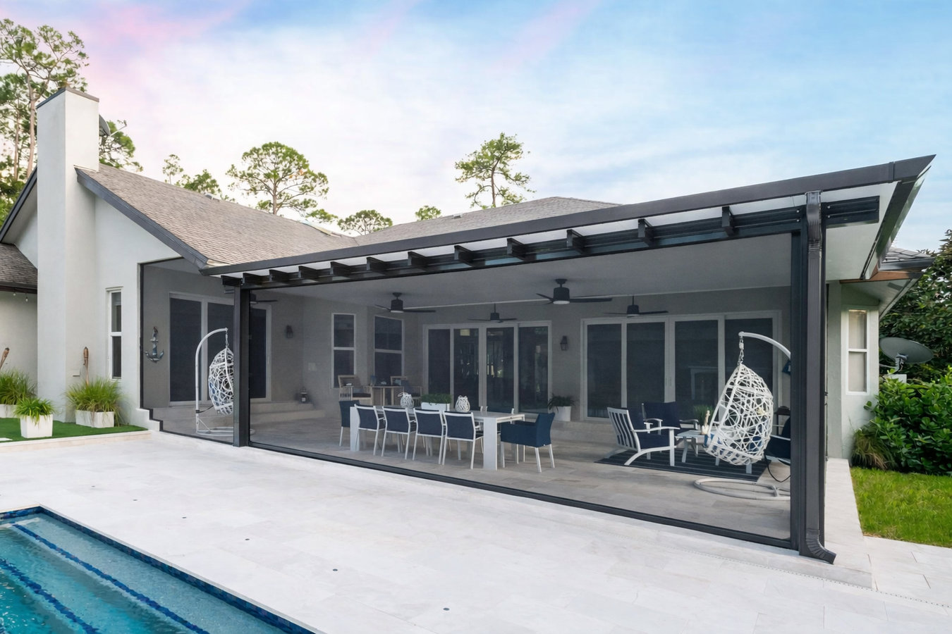 Convert your existing patio into a fully enclosed sunroom space.